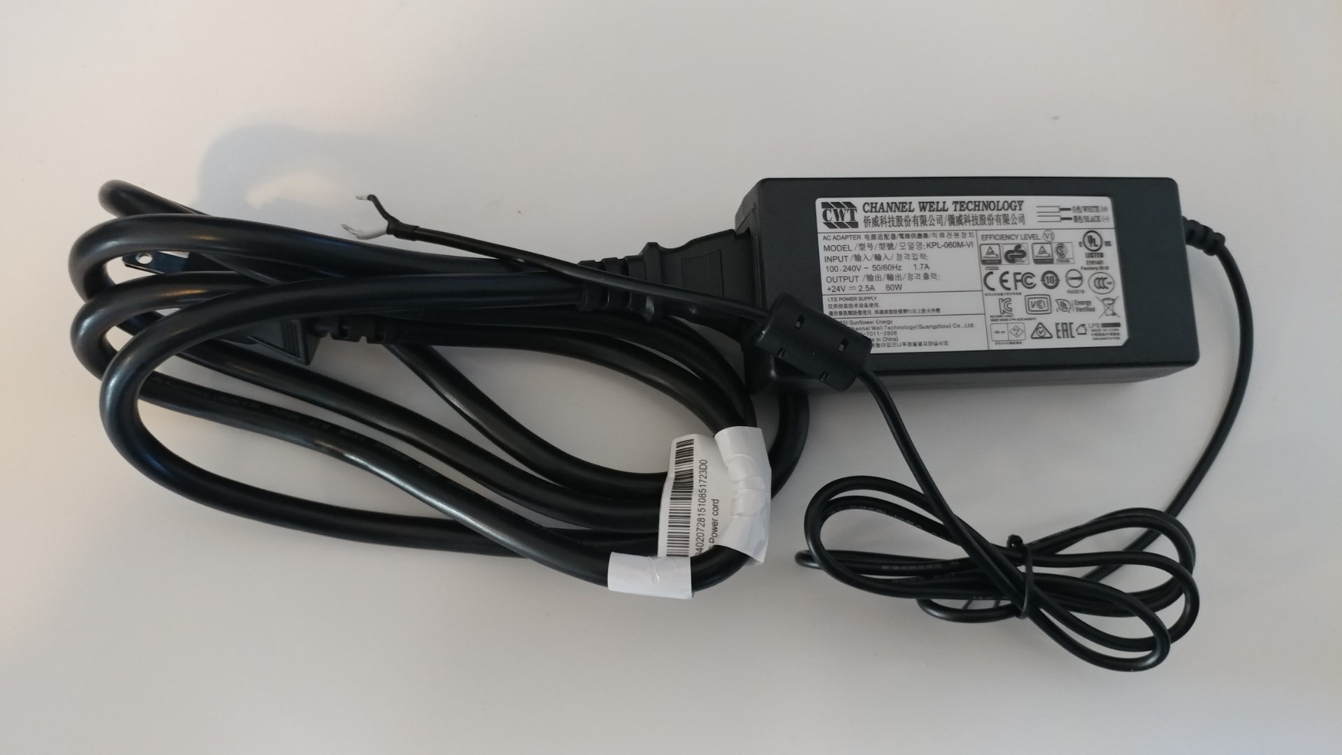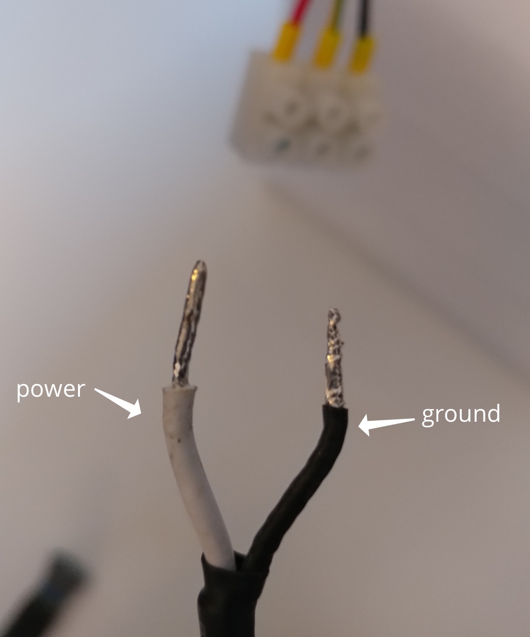 On the power supply, the white wire is power and the black wire is ground, as is standard with US regulations.