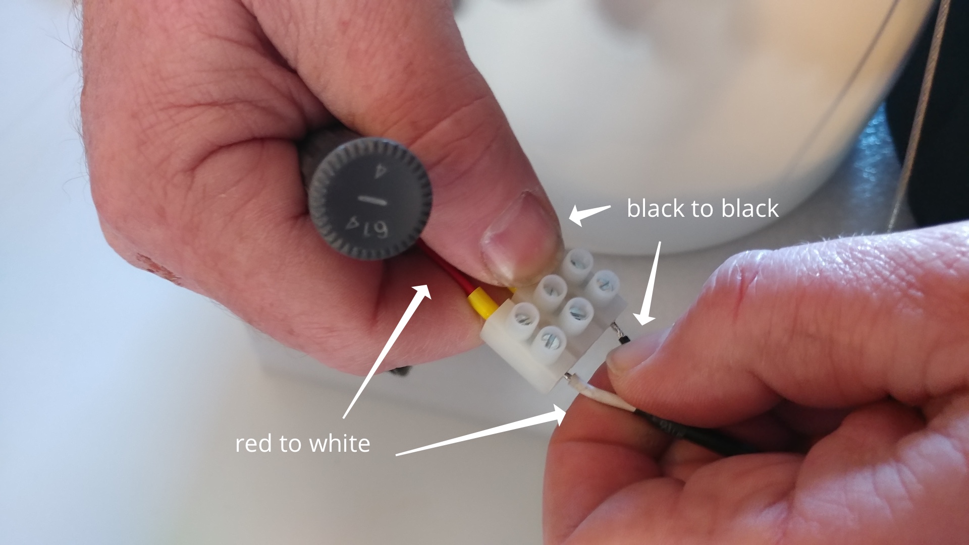 This is how the power connection on the camera will look - there's a place to insert the bare wire and a tightening screw to keep it in place.