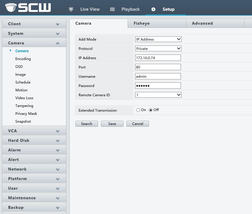 Camera Management -> Open the Port of the camera -> check extended transmission.