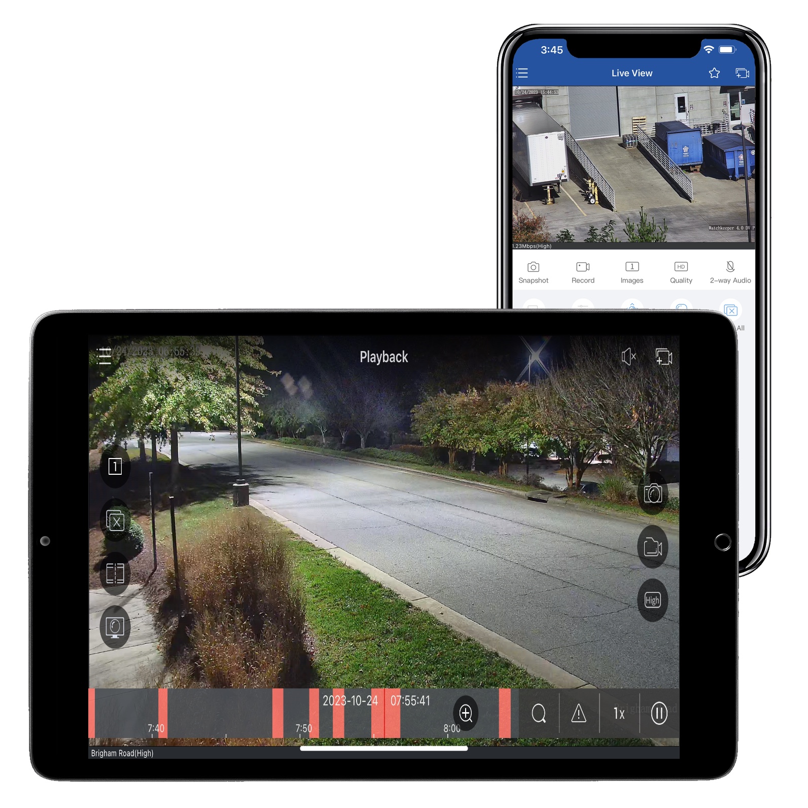 To export footage, first find the clip that you need using the playback feature then tap the record icon on the menu bar. When you tap the record icon it will begin recording directly to your phone or tablet. Once the incident is over, simply tap the record icon again to end the clip. Tap the ‘View’ link to see your recorded clips in snapshots. From there, you can tap the share icon at the bottom to share it, or the download icon to save it directly to your phone or tablet.