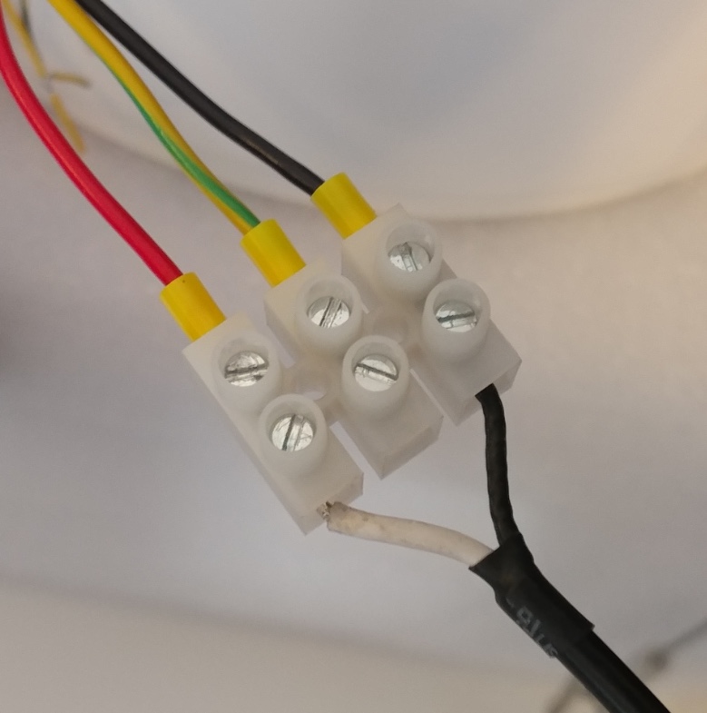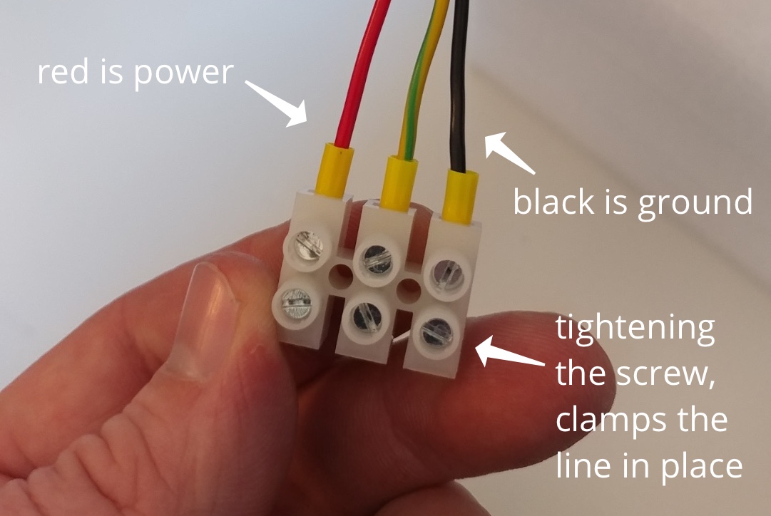 This is how the power connection on the camera will look - there's a place to insert the bare wire and a tightening screw to keep it in place.