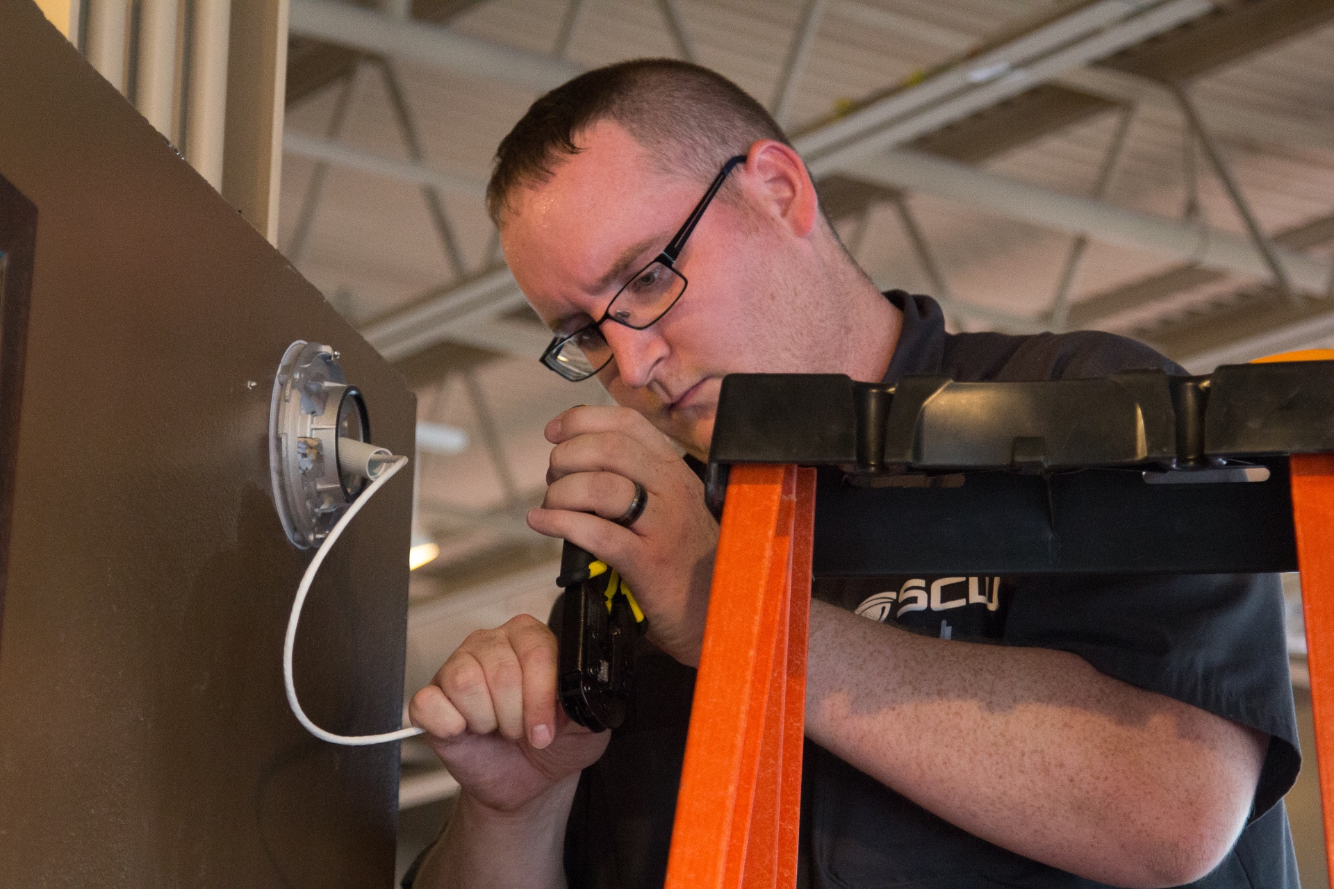 Using a drill and a 5/64 drill bit; drill pilot holes in each location marked on the mounting template.