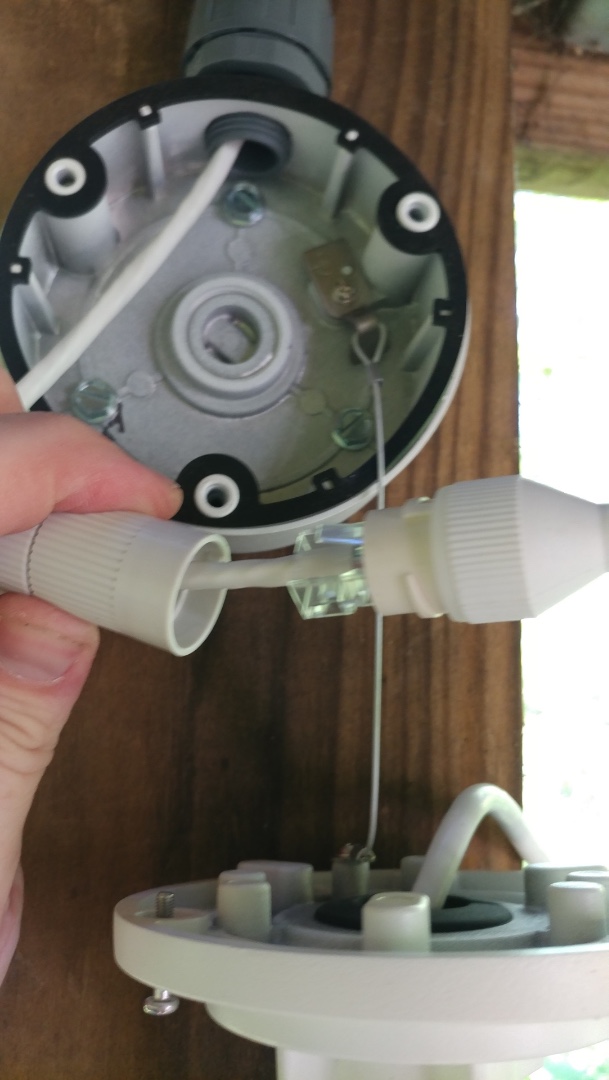 Connect cameras RJ45 lead to cable and connect weatherproof coupler.